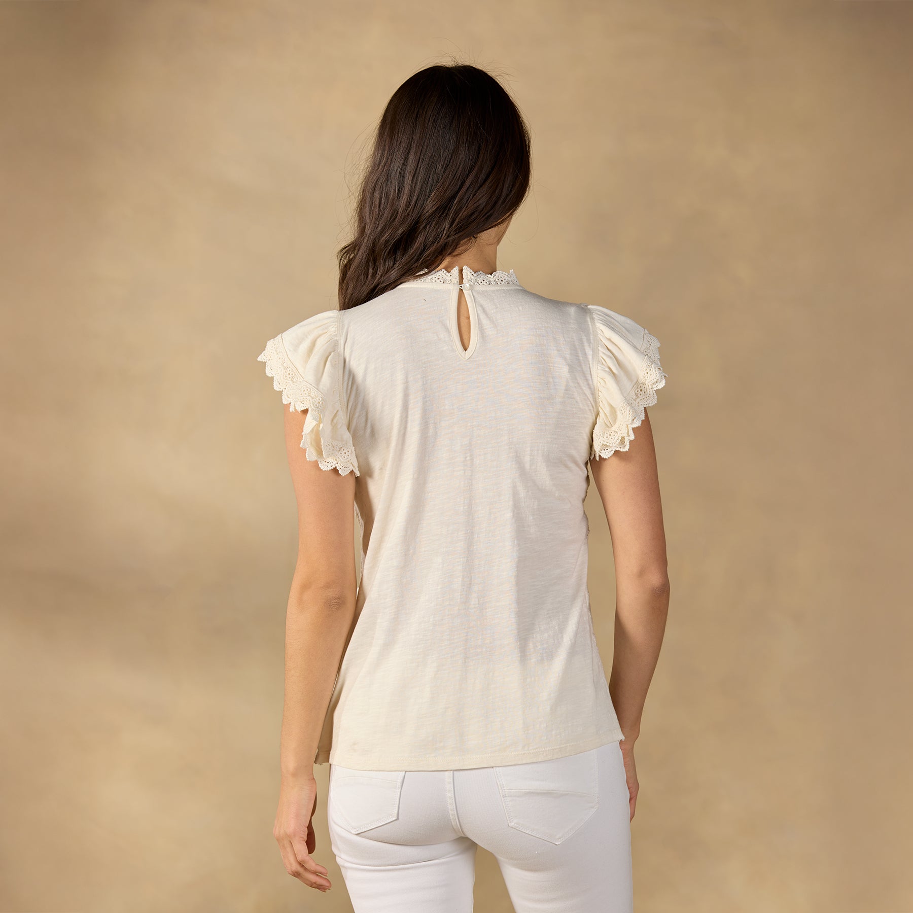 A feminine touch in every detail. our Alhambra Top is textured with intricate crochet. an extra embellishment of eyelet along the sleeves. Cotton slub back. Cotton. Machine wash. Imported. Exclusive. Sizes XXS (00). XS (0–2). S (4–6). M (8–10). L (12–14). XL (16–18).
