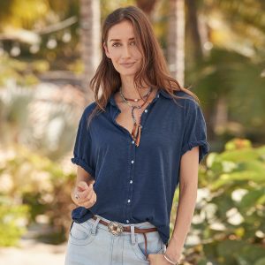Our jumpsuit has a relaxed. button-front silhouette with beautiful drape. six pockets. drawstring tie. roll-tab sleeves and distressed metal buttons. Lyocell/viscose. Machine wash. Imported. Exclusive. Sizes XS (0 to 2). S (4 to 6). M (8 to 10). L (12 to 14). XL (16 to 18). XXL (20 to 22). Approx. 61L. 28-1/2 inseam.