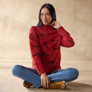Our cozy sweater features the machine-embroidered sentiments cozy. home and snow. An allover rib with mock neck. rib trim. jersey roll neckline and exposed seaming at raglan sleeves. Acrylic/nylon. Hand wash. Imported. Exclusive. Sizes XS (0?C2). S (4?C6). M (8?C10). L (12?C14). XL (16?C18). XXL (20?C22). Approx. 23l.