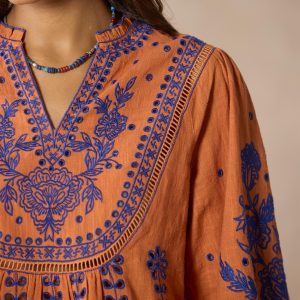 Stunning allover embroidery adds wonder and beauty to our vibrant notch neckline top graced with ladder lace insets. eyelet details and ruffles at the neckline. Bracelet length sleeves. Camisole sold separately. Cotton. Machine wash. Imported. Exclusive. Sizes XXS (00). XS (0–2). S (4–6). M (8–10). L (12–14). XL (16–18). Approx. 24l.
