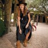 This flirty. pull-over dress features all-over eyelet embroidery. a notch collar with ruffle. two tiers and tassels with beading. Cotton. Machine wash. Imported. Exclusive. Sizes XS (0-2). S (4-6). M (8-10). L (12-14). XL (16-18). Approx. 34.5l.