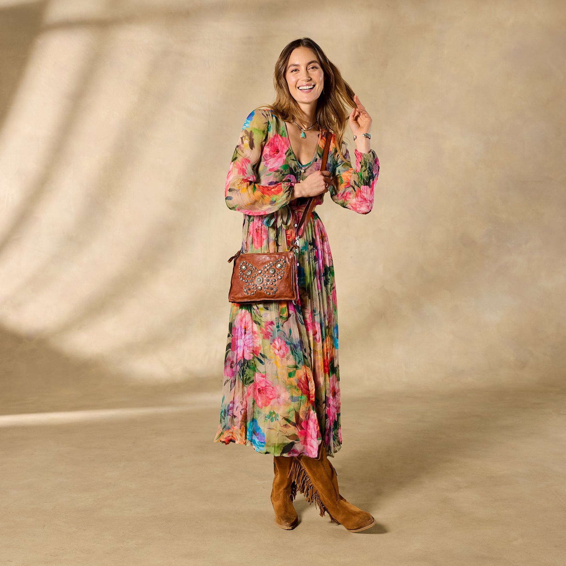 Be a heavenly vision wherever you go in our floaty Halcyon maxi. A vibrant exploded floral pattern further elevates an already stunning jacquard fabric; with shell buttons. elastic cuffs. removable belt and separate printed slip. Viscose. Machine wash. Imported. Exclusive. Sizes XXS (00). XS (0–2). S (4–6). M (8–10). L (12–14). XL (16–18). Approx. 49l.