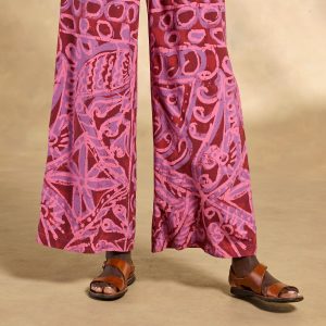 The easiest. breeziest. warm weather pants. with a beautifully draping wide-leg silhouette. big floral print and side seam pockets. Viscose. Machine wash. Imported. Exclusive. Sizes XXS (00). XS (0?C2). S (4?C6). M (8?C10). L (12?C14). XL (16?C18). 27 inseam.