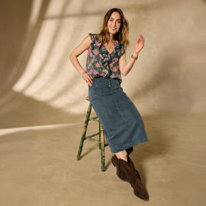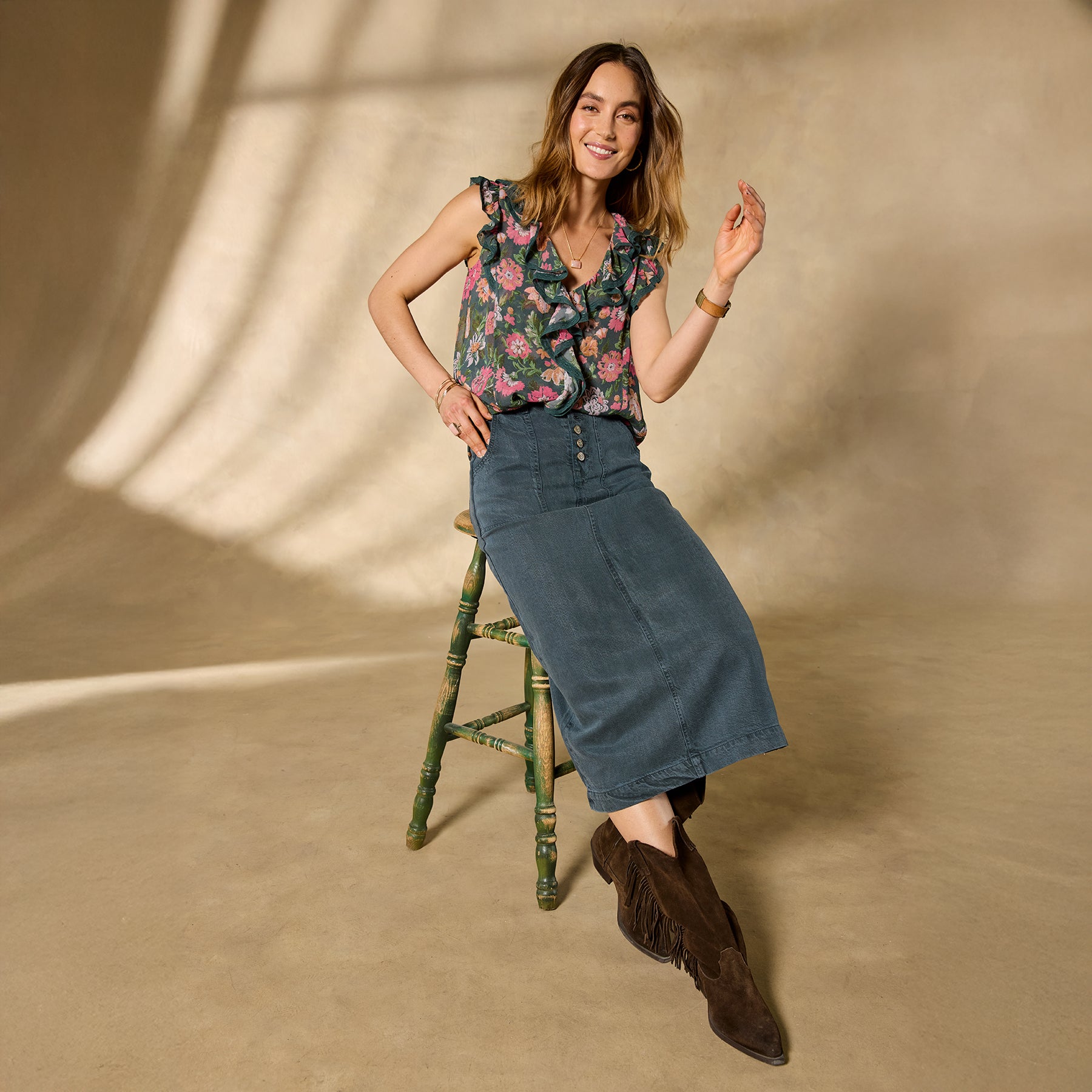 Elegant flutter sleeves. lace accents and a flirty flounce around the neckline add a fluid beauty to this soft floral top. Matching camisole included. Viscose. Machine Wash Imported. Exclusive. Sizes XS (0–2). S (4–6). M (8–10). L (12–14). XL (16–18). XXL (20–22). Approx. 25l.