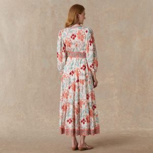 This flirty. wear-anywhere dress is handcrafted and features a button-down style. subtle stripe and self tie. Linen/rayon/cotton. Machine wash. Sizes XS (0-2). S (4-6). M (8-10). L (12-14). Approx. 37l.