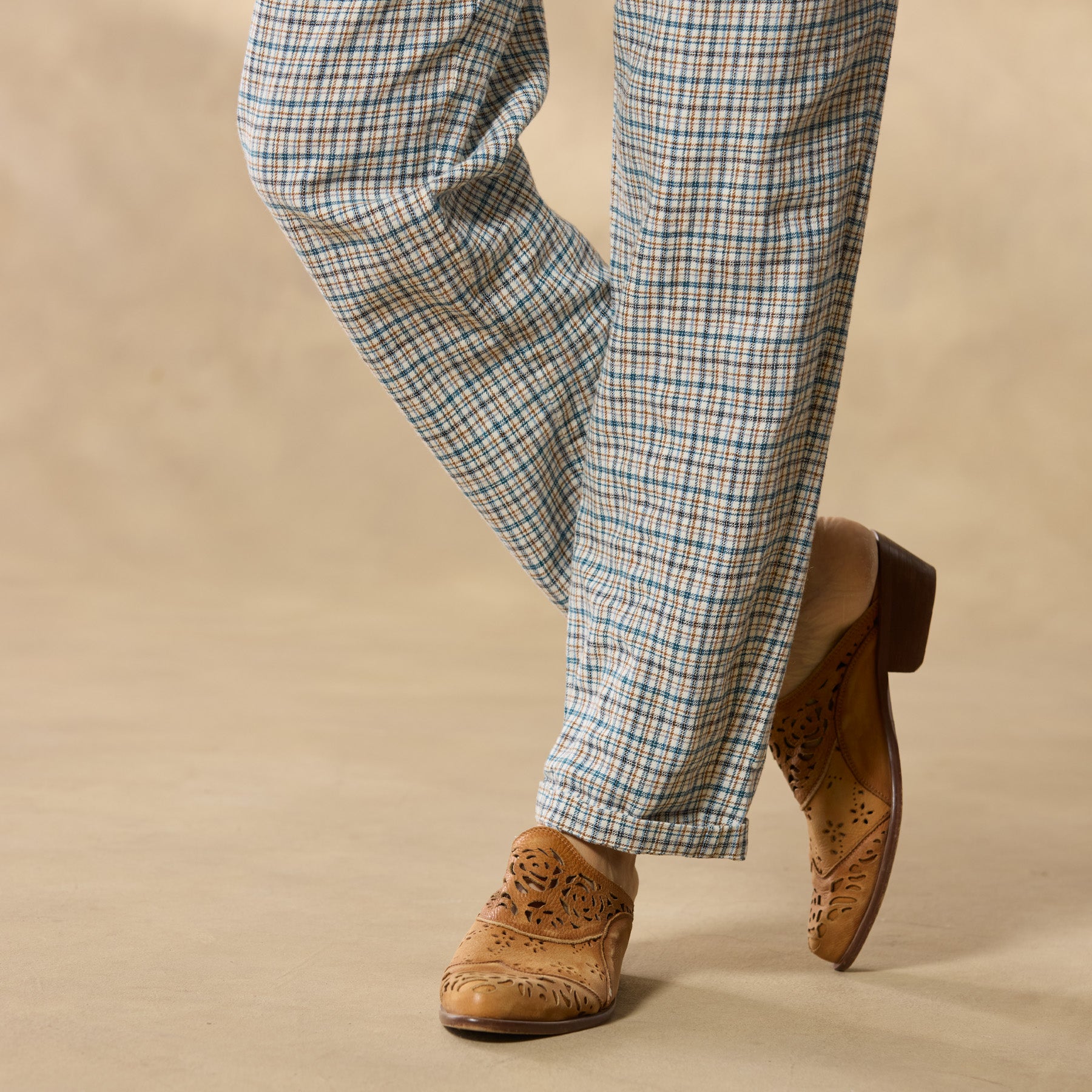 Just when you thought gingham couldn’t get ANY more easygoing. our Vivienne Pants entered the conversation. You’ll live in these pleated garment-dyed pants with a paper-bag waist and welt pockets in front and back. Cotton/linen. Machine wash. Imported. Exclusive. Sizes 2?C16. 27 inseam.